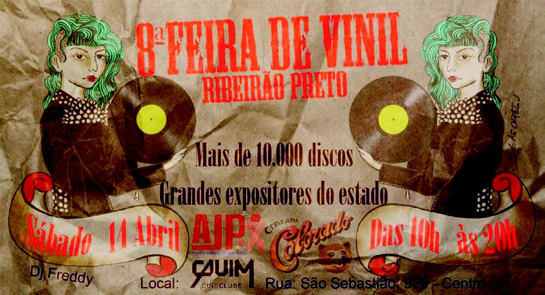 O Cineclube CAUIM promove no próximo dia 14 de abril, das 10 às 20 horas, a 8ª Edição da Feira de Vinil de Ribeirão. O evento vai reunir grandes expositores, de várias partes do Estado, com mais de 10 mil discos, acessórios, artesanatos, toca discos, CD´s, DVD´s e camisetas.