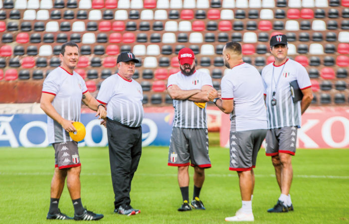 Direto ao assunto, ele não desconversa e já esboça uma equipe com três zagueiros (Plínio, Naylhor e Ednei), e com o ataque com um homem de referência, que poderá ser Rafael Costa, no lugar de Bruno Moraes, o General. Outra novidade foi Pimentinha entre os reservas. “Quando o time não marca, sobrecarrega a defesa, então precisamos de uma marcação mais adequada, mas isso não quer dizer que iremos jogar com medo e para empatar,” salientou.