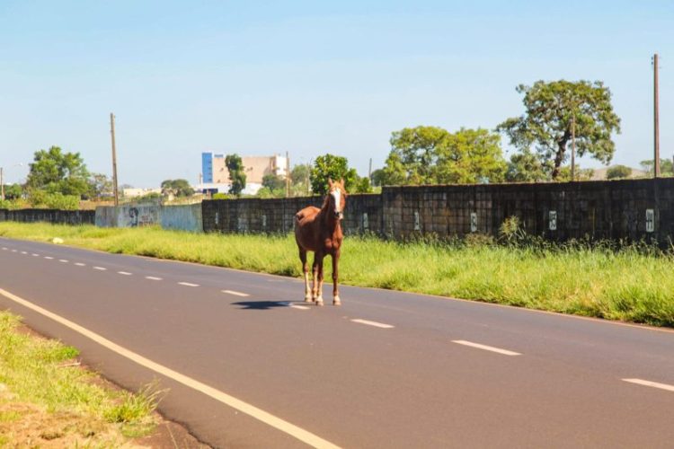 Um cavalo foi visto, na manhã desta quinta-feira (27), passeando no meio dos veículos. O caso foi registrado na avenida Orestes Lopes de Camargo, Jardim Jóquei Clube, zona Norte de Ribeirão Preto.