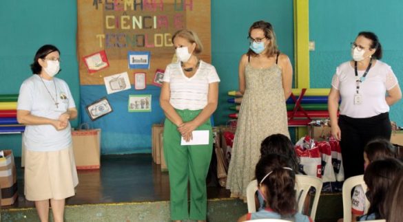 A presidente do Centro do Voluntariado dos Hospitais São Lucas e Ribeirânia, Silvana Issa Chodraui, a vice-presidente, Heliana Palocci, e outros representantes do Centro do Voluntariado, realizaram, dia 7 de dezembro, a entrega de presentes na Associação São Francisco de Assis Gewo Haus. Os 60 Kits, contendo brinquedos e guloseimas foram entregues às crianças e adolescentes frequentadores da instituição. A ação contou com o envolvimento de médicos e funcionários dos hospitais, que patrocinaram as doações. A festona foi comandada pela Irmã Maria Aparecida Paulino, presidente da Associação São Francisco de Assis Gewo Haus, Heliana Palocci, Silvana Issa Chodraui e Maria Souza (secretária-executiva no Grupo São Lucas).