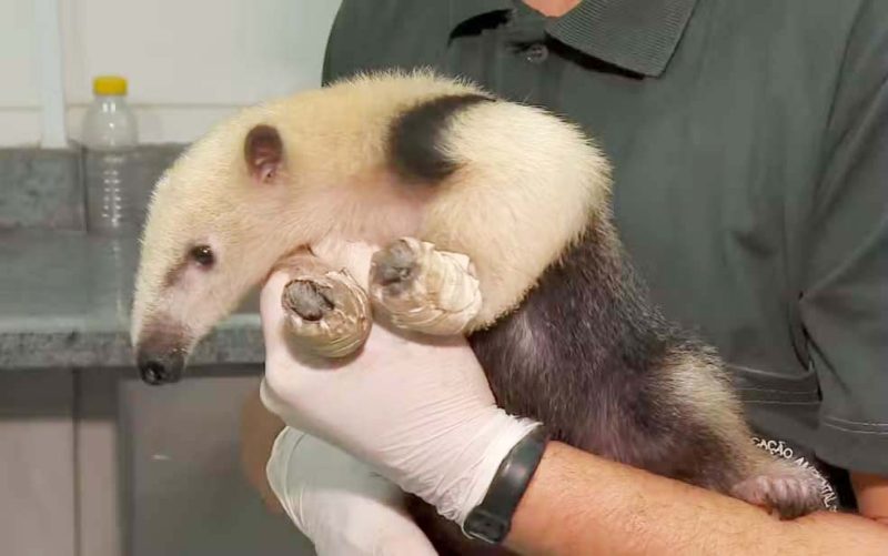 Divulgação Tamanduá-mirim Tobias, resgatado após sofrer queimaduras durante o incêndio na Estação Ecológica de Jataí, e mais 58 animais voltaram à natureza