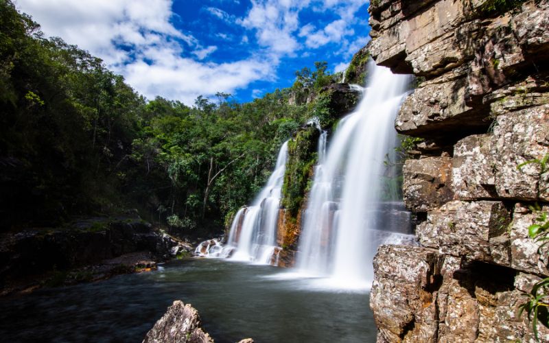 Cachoeiras e quedas d’água compõem o cenário característico da Chapada dos Veadeiros, um dos principais destinos de ecoturismo do país | Reprodução