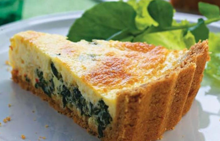 8. Coloque o espinafre refogado sobre a massa e, por cima, o creme batido.