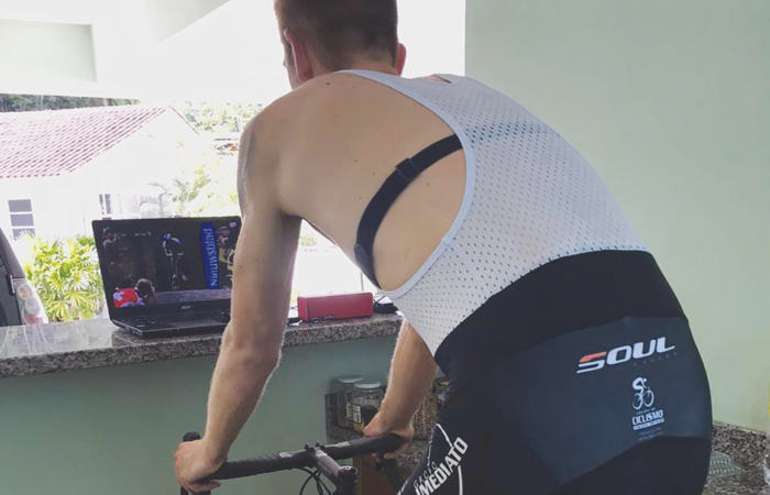 “Os treinos em casa estão sendo um pouco diferentes na questão do volume, já que não é possível fazer tantos quilômetros no rolo, que é o que eu utilizo para pedalar em casa. Porém estou procurando me manter bastante focado nos treinos, mesmo sem previsão de volta à normalidade.