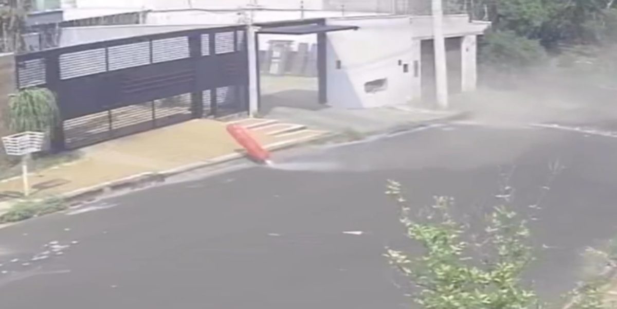 A explosão de um cilindro de gás em uma residência assustou moradores da rua João de Bortolli, Residencial Flórida, zona Sul de Ribeirão Preto. O susto ocorreu na manhã desta quarta-feira (8) e foi registrado por câmeras de segurança.