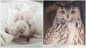 Quais as características das corujas? – Os filhotes nasceram com cerca de 30 gramas e podem atingir mais de quatro quilos, além de chegar a 75 centímetros de altura, com envergadura de asas de até 1,80 metro. Eles recebem alimentação rica em proteínas e passam por monitoramento constante de peso, temperatura e desenvolvimento.