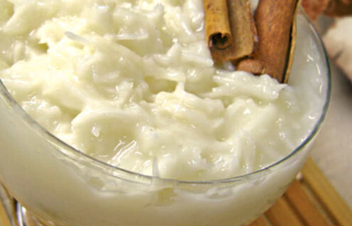 1. Em uma panela, coloque a maisena e o leite de coco e misture até formar um caldo consistente.