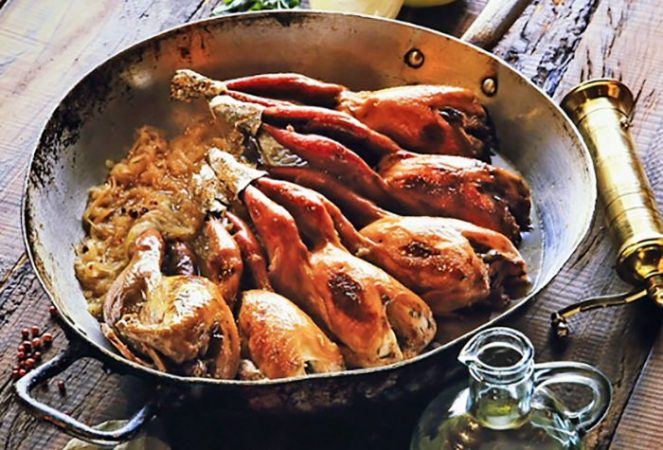 Tempere as codornas com vinagre, suco de laranja,