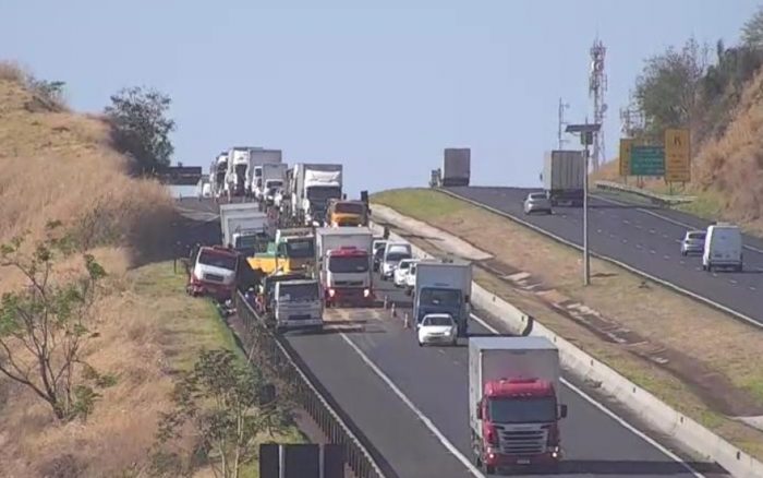 Para que fosse feita a limpeza da pista, foi necessária a interdição de uma das faixas e do acostamento. No entanto, o trânsito segue normalmente pela faixa da esquerda.