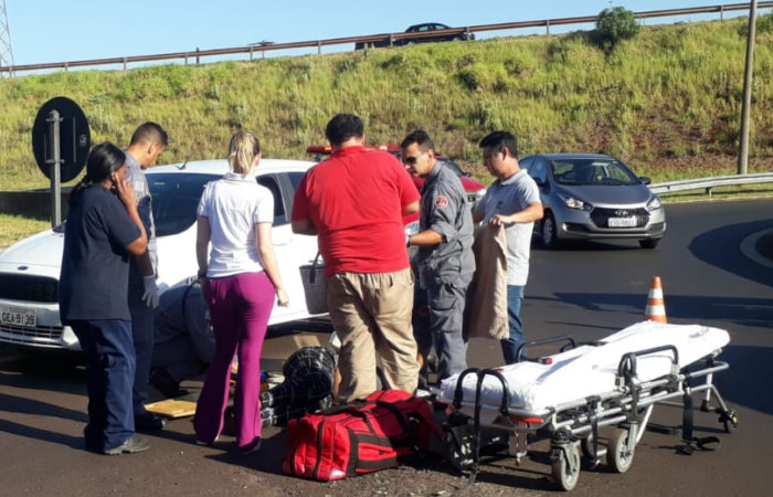 Motociclista e a mulher grávida na garupa foram levados para hospital particular