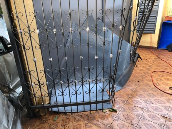 Colisão entre carro e ônibus destrói portão de casa nos Campos Elíseos