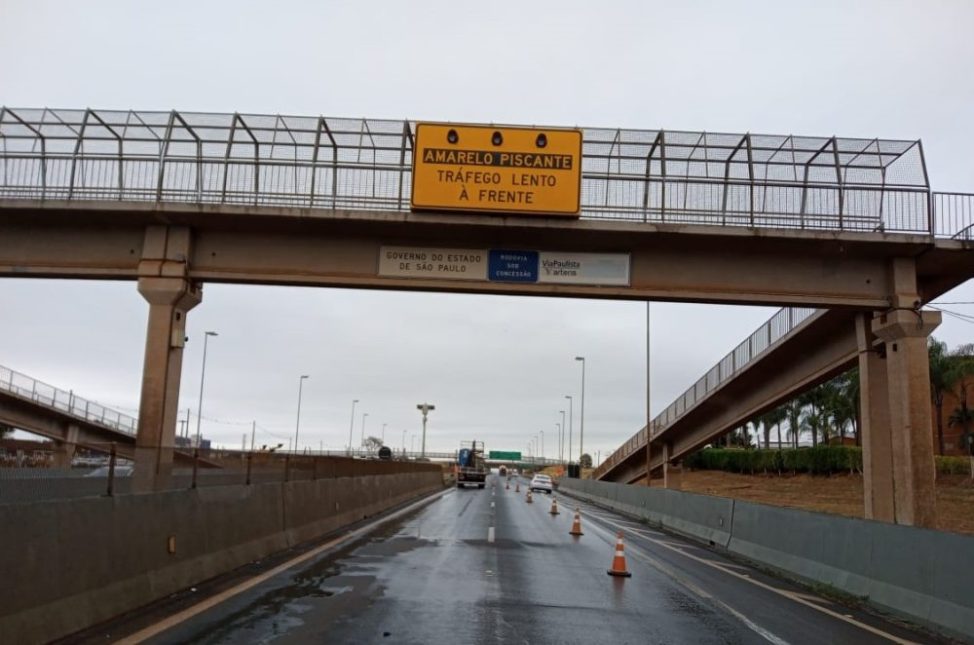 A Arteris ViaPaulista iniciou a implantação de sinalização de advertência para indicação de tráfego lento na Rodovia Anhanguera (SP-330), em Ribeirão Preto, no perímetro urbano entre o km 306+840 e o km 317, em ambos os sentidos da via (Norte e Sul). O objetivo é alertar os condutores sobre condições adversas que causem lentidão no tráfego e, assim, reduzir as colisões traseiras, segundo tipo de acidente mais comum na Rodovia Anhanguera, ocasionado na maioria das vezes pelo excesso de velocidade e falta de distanciamento seguro do veículo que trafega à frente.