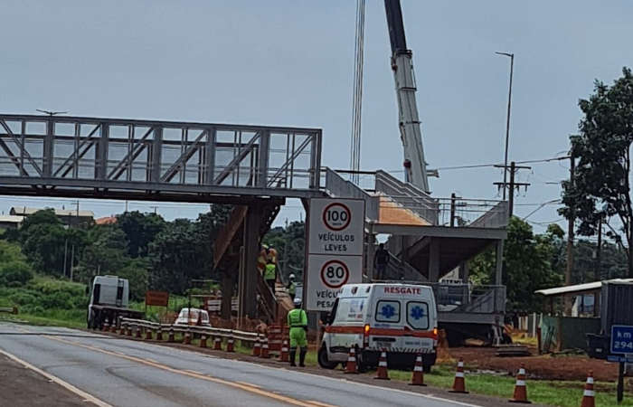 Essa nova passarela está instalada no trecho da rodovia que passa dentro do município, facilitando os deslocamentos dos moradores que entram e saem dos bairros João Berbel III, Santa Cruz e Jardim Botânico. O investimento é de R$ 1.608.769,33. A conclusão da obra está prevista para maio deste ano – será instalada ainda uma escada de acesso para pedestres, além da rampa já finalizada.