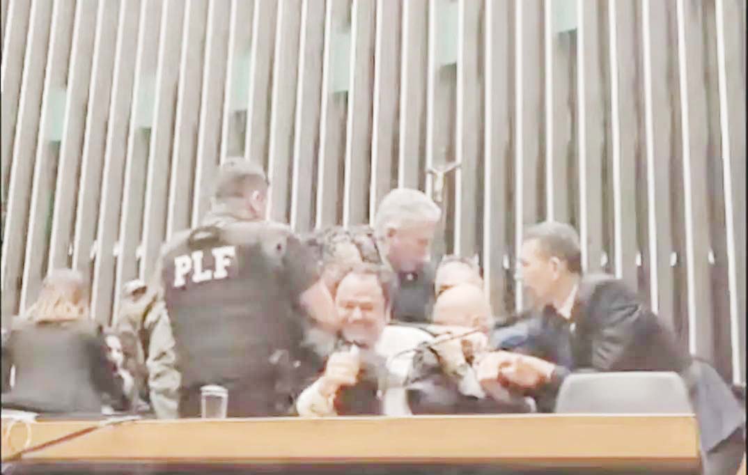 Imagens registradas por deputados mostram o momento em que o deputado é retirado à força, sob protestos de parlamentares aliados.