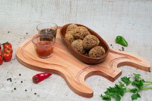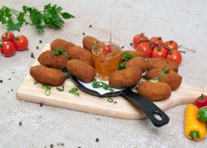Croquete de frango com um toque de gengibre. Acompanha um molho mineiro.