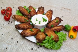 Tulipinha de frango recheada com catupiry. Acompanha molho de iogurte.