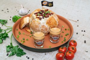 Ragu de carne na cerveja preta, servido no pão semi-italiano gratinado com queijos. Acompanhamento shot de cachaça.