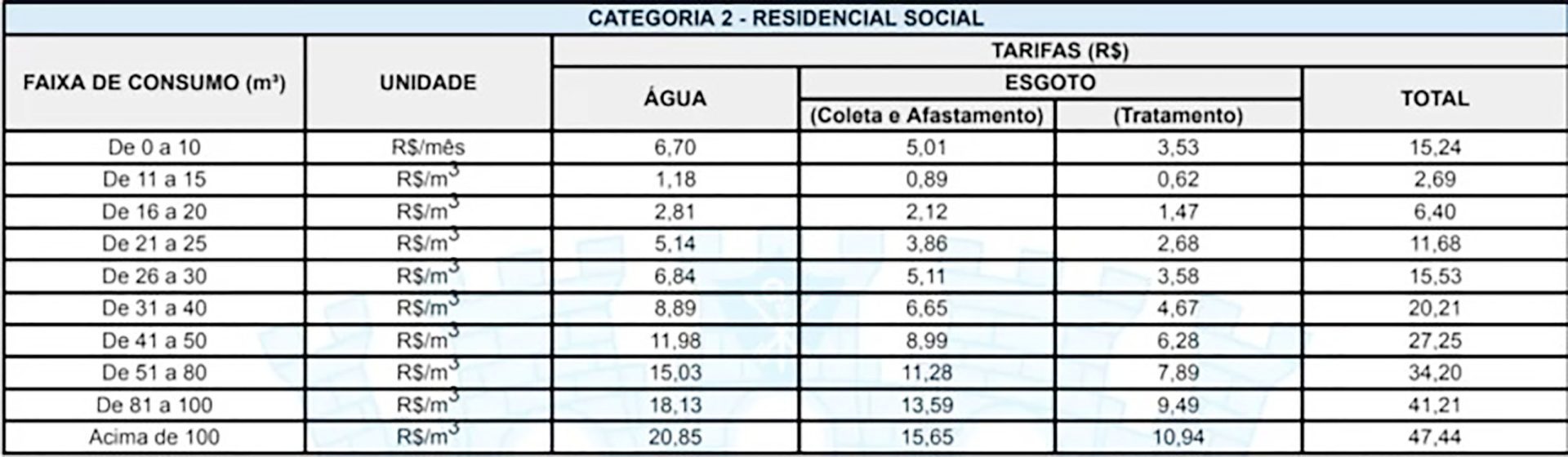 Já a tarifa residencial social, com desconto de 30% para as famílias de baixa renda inscritas no Cadastro Único (CadÚnico) passará de R$ 14,53 para R$ 15,24. O CadÚnico é um instrumento do governo federal que identifica e faz a inclusão de famílias de baixa renda em programas sociais, sendo usado para a concessão dos benefícios do Programa Bolsa Família. Ribeirão Preto tem atualmente cerca de 24 mil famílias cadastradas.