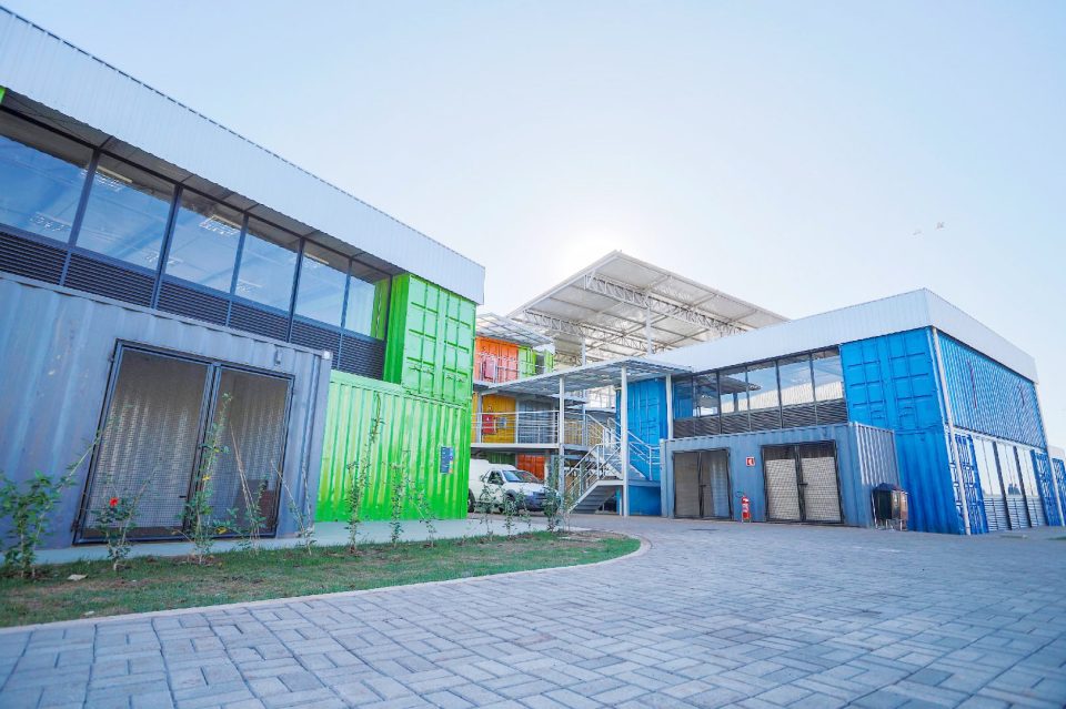 Além de dez módulos empresariais (de 150 cada), o espaço conta com praça de eventos, rooftop, sala de treinamentos, cafeteria e espaços de descompressão. Trata-se da maior estrutura de contêineres marítimos instalada na América Latina.
