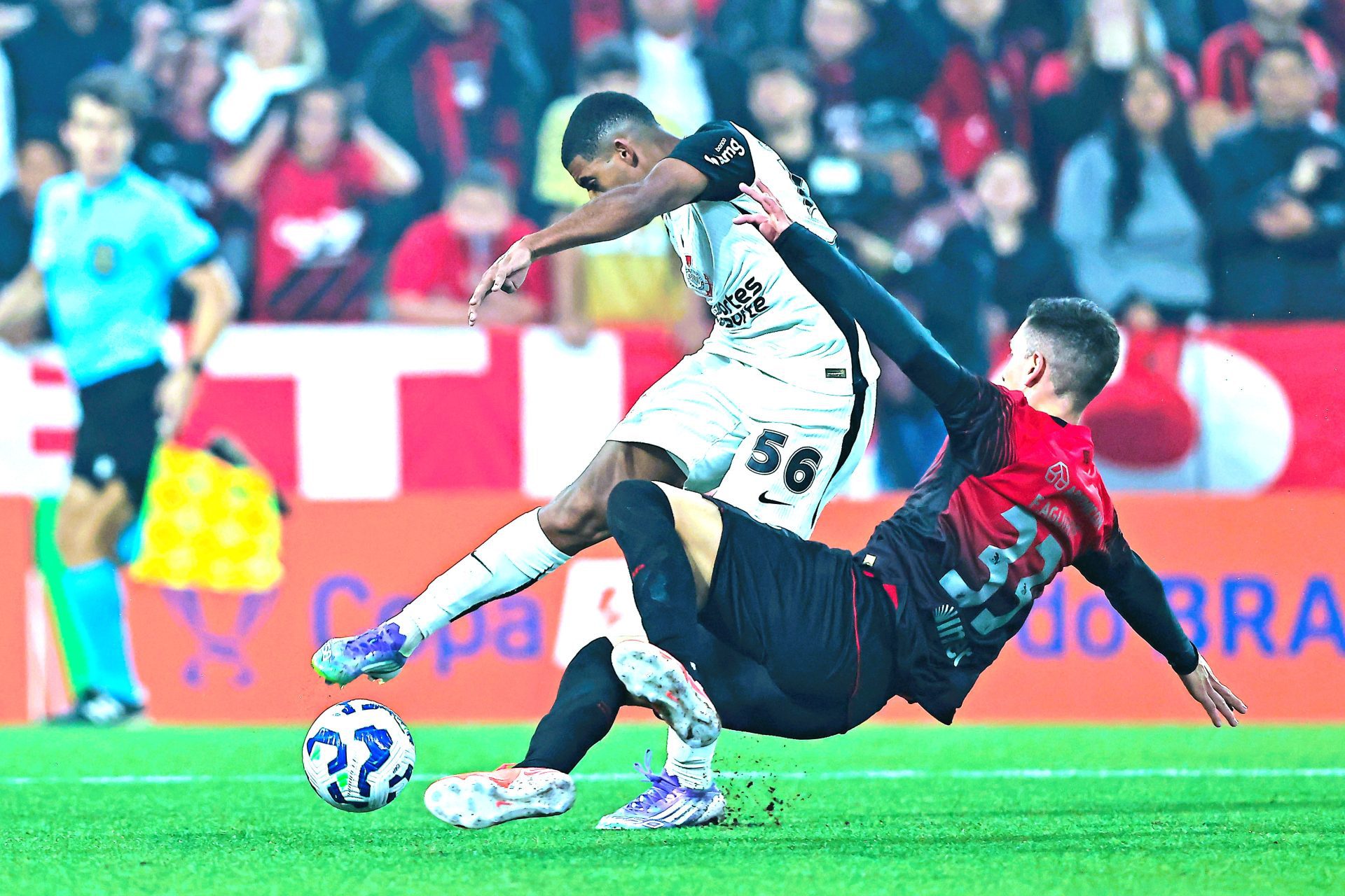 O Athletico voltou a pressionar. O time entendia que não poderia ir à Neo Química Arena em desvantagem. Benavídez chegou a empatar, mas Wilton Pereira Sampaio anulou após revisão no VAR. O argentino havia completado chute de Dudu. Antes da bola sobrar ao meia, porém, ela havia batido na mão de Viveros.