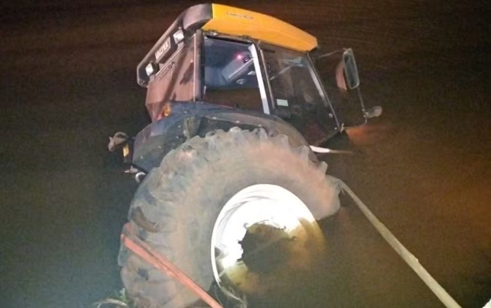 A Polícia Militar foi alertada do trator parcialmente submerso e acionou o Corpo de Bombeiros. Na cabine, que ficou parcialmente coberta, havia o corpo de um homem, que não teve identidade revelada.