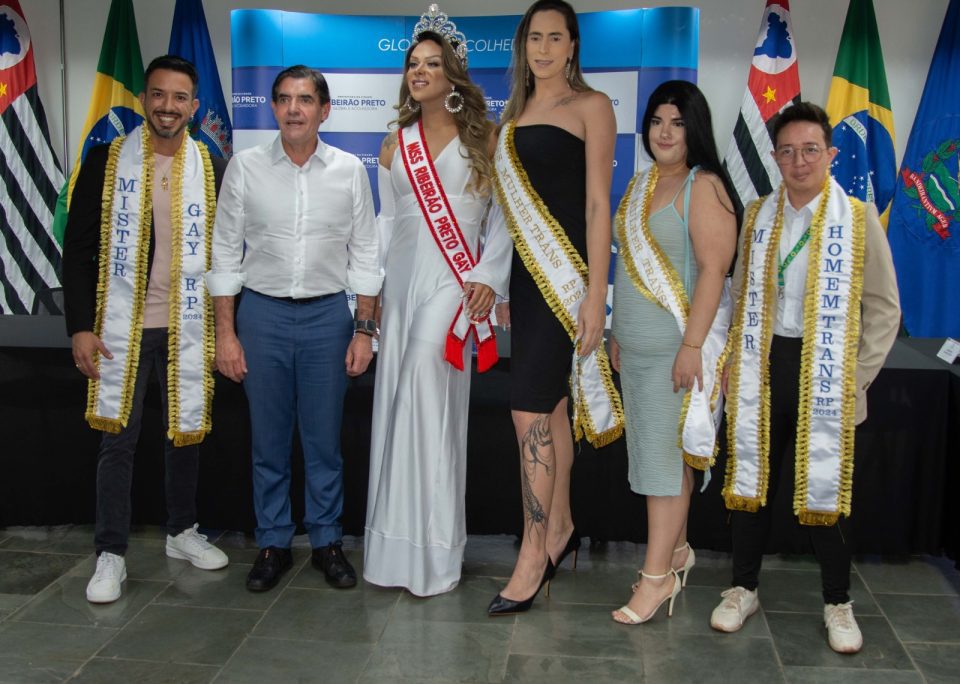 Os integrantes do Concurso Miss e Mister LGBTQIAP+ 2024, eleitos no último 16 de maio, no palco do Teatro Municipal de Ribeirão Preto, que compõe uma das mais tradicionais e principais atividades da 20ª Parada LGBTQIAP+ da ONG Arco-Íris, foram recebidos na tarde desta terça-feira, dia 28, pelo prefeito Duarte Nogueira, na sede do centro administrativo do município.