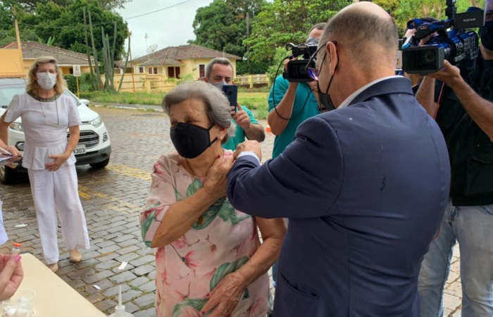 Na manhã desta sexta-feira, 12 de fevereiro, o diretor do Instituto Butantan, Dimas Tadeu Covas, esteve em Batatais, município localizado na Região Metropolitana de Ribeirão Preto, onde aplicou pessoalmente uma dose da vacina contra o novo coronavírus em sua mãe, dona Maria José de Toledo Covas, de 87 anos.