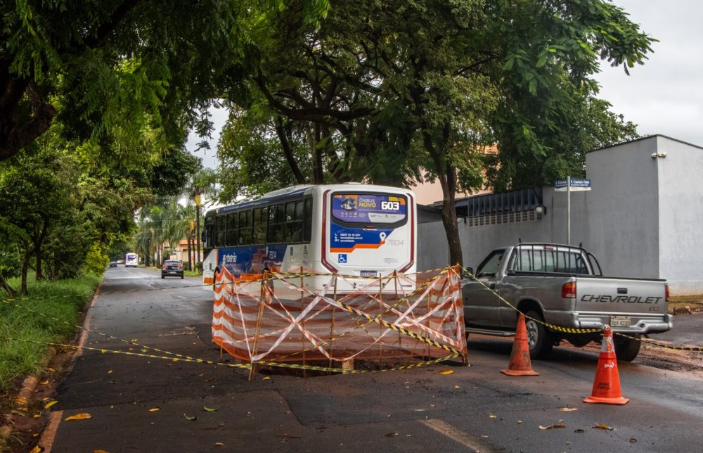 Um grande buraco surgiu no último sábado (17), na Avenida José Gomes da Silva, Lagoinha, zona Leste de Ribeirão Preto. A cratera, localizada bem no meio de uma das pistas da avenida, se formou após o rompimento de uma adutora, causada pelas fortes chuvas registradas no final de semana.