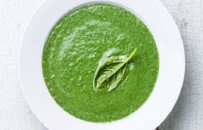 7. Caso o espinafre seja fresco, desligue o fogo, deixe esfriar um pouco e bata o creme no liquidificador ou com um mixer na própria panela para triturar o espinafre.