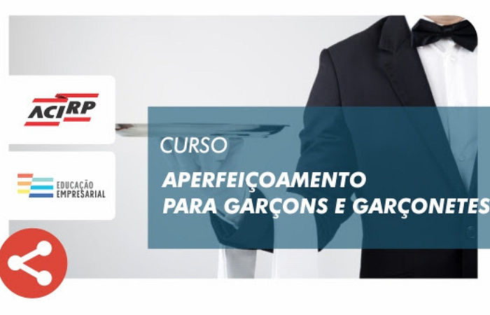 A Associação Comercial e Industrial de Ribeirão Preto (ACIRP) promove, nos próximos dias 23 e 24, das 14 às 18 horas, na Faculdade de Gastronomia da Barão de Mauá, o curso de aperfeiçoamento para garçons e garçonetes. A faculdade fica na Avenida Itatiaia, 1176, no bairro Jardim Sumaré. As vagas são limitadas e tem custo de R$ 160 para associados e de R$ 195, para não associados. Mais informações pelo telefone (16) 3512-8000.