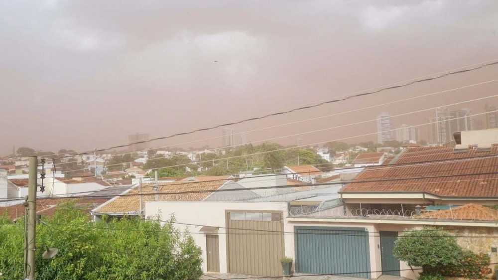 “Tempestade de terra” em Ribeirão Preto: ventos acima de 70 km por hora levantaram a poeira acumulada e o céu ficou avermelhado na cidade