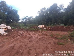 Durante a vistoria, foi identificado o ponto de deposito dos resíduos na margem oposta ao Clube de Regatas, onde havia movimentação de maquinário para aterramento do material.