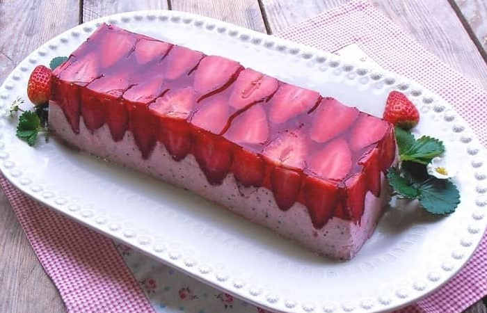 6. Despeje a gelatina em cima do creme e dos morangos.