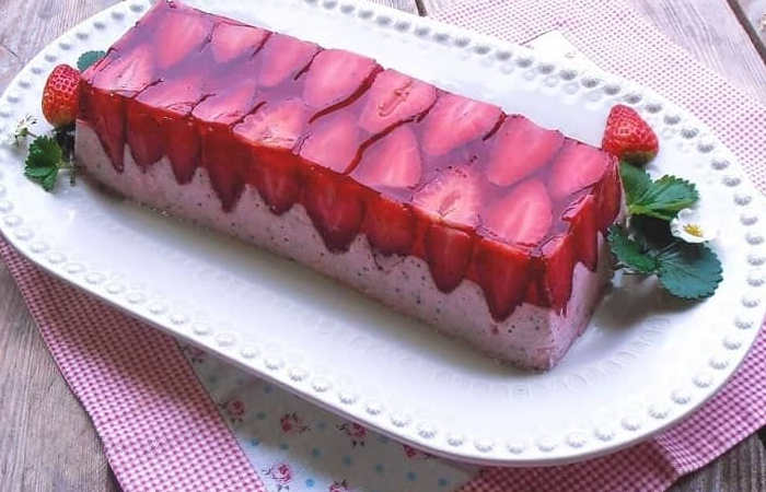 6. Despeje a gelatina em cima do creme e dos morangos.