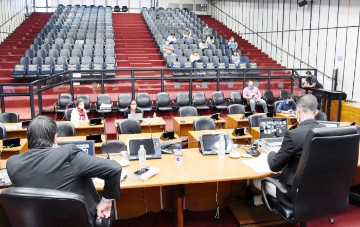 Apesar de ter sido realizada por vídeo conferência, tanto o presidente da comissão, Or­lando Pesoti (PDT), quanto o relator Renato Zucoloto (PP) em os dois servidores estiveram presencialmente no plenário da Câmara. Eles seguiram todas as normas de distanciamento so­cial exigidas para a prevenção do contágio do coronavírus. A comissão é composta também por Alessandro Maraca (MDB, vice-presidente), Jean Corauci (PSB), Paulo Modas (PSL) e Ma­rinho Sampaio (MDB).