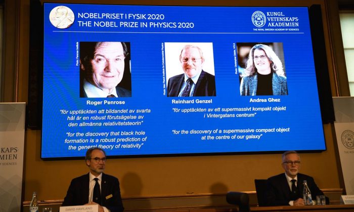 O britânico Roger Penrose, o alemão Reinhard Genzel e a norte-americana Andrea Ghez conquistaram o Nobel de Física de 2020 por suas descobertas sobre um dos fenômenos mais exóticos do universo, o buraco negro.