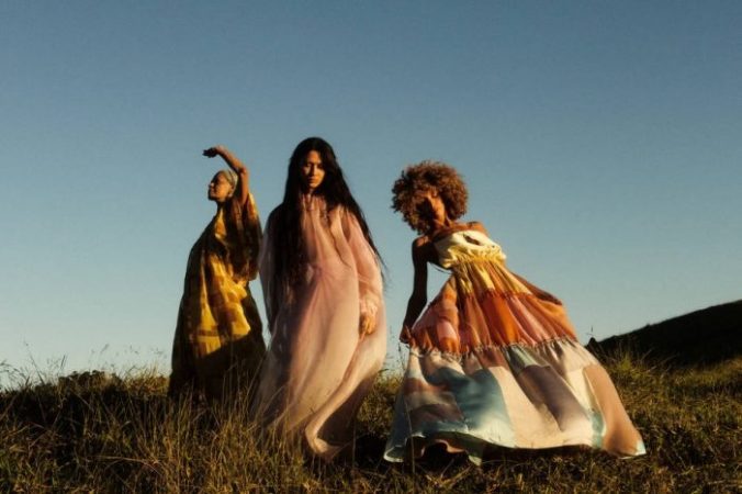 O filme Sopro, de Flavia Aranha, que é conhecida por seu trabalho com sustentabilidade e por seus tingimentos naturais, mostra a moda, as mulheres e a natureza coexistindo de forma harmônica e simbiótica. As peças, feitas de algodão, linho, seda e lã naturais e orgânicas, foram criadas a partir de tecidos residuais acumulados pela marca durante o período de pandemia, que agora ganham um novo propósito. Os destaques são os vestidos vaporosos, que fluem ao vento criando formas e desenhos hipnóticos.