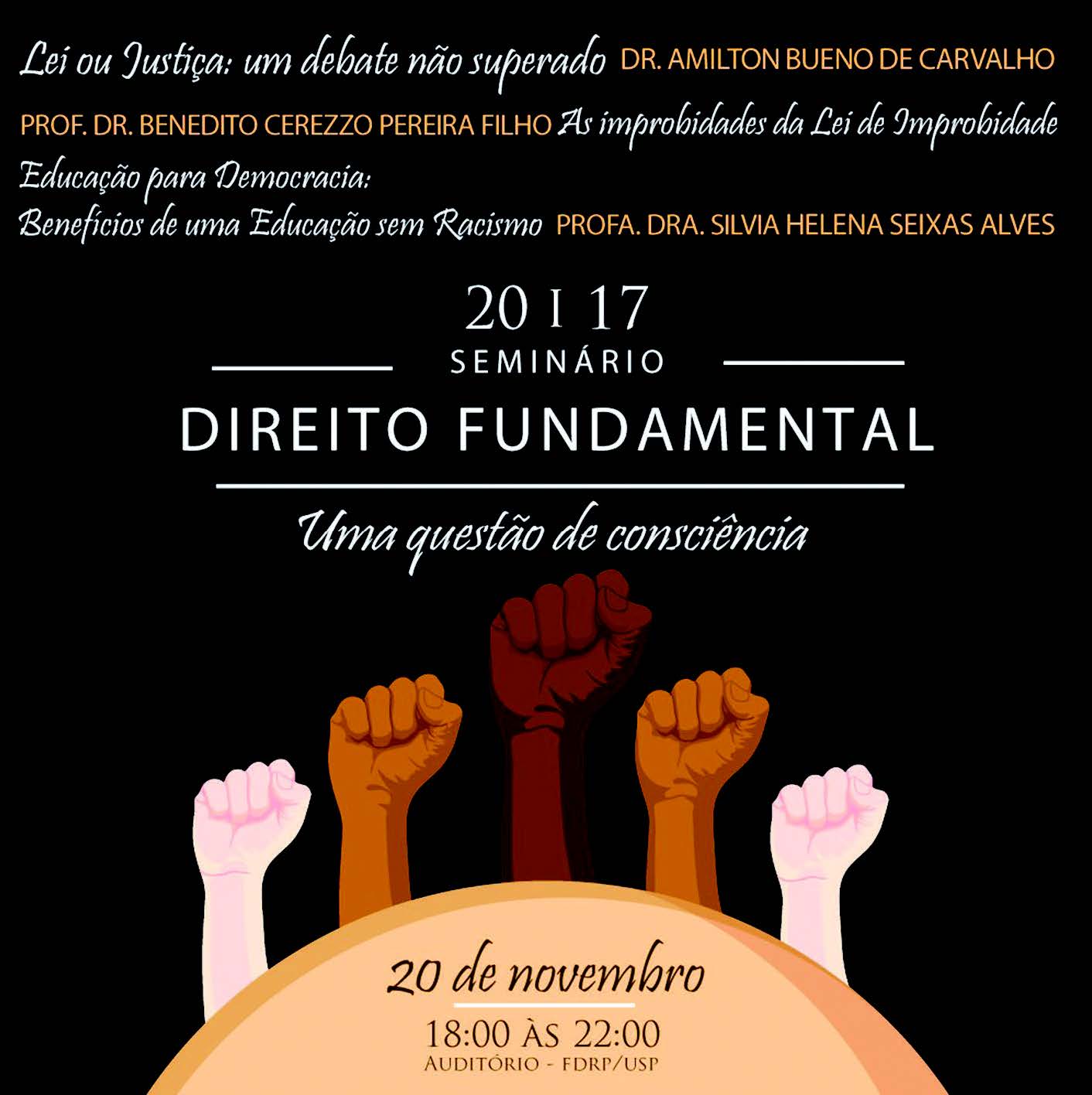 A Faculdade de Direito da USP Ribeirão promove na próxima segunda (20), Dia da Consciência Negra, o seminário “Lei ou Justiça – Um Debate Não Superado”, com os professores Hamilton Bueno de Carvalho e Benedito Cerezzo Pereira Filho. Na oportunidade, a professora Sílvia Helena Seixas Alves, fala sobre o tema “As Improbidades da Lei de Improbidade – Benefícios de uma Educação Sem Racismo”. O evento acontecerá no Auditório da Faculdade, das 18h00 às 22 horas.