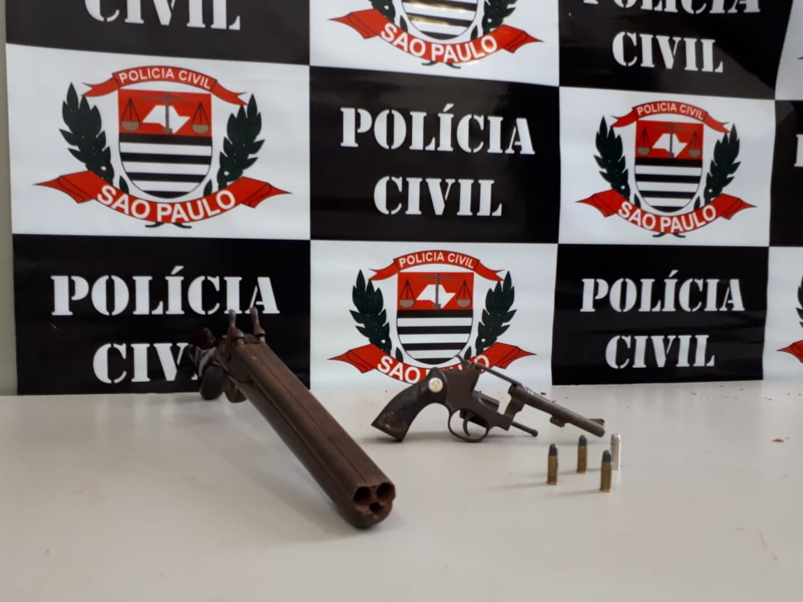 Policiais civis da DISE (Delegacia de Investigações sobre Entorpecentes de Ribeirão Preto), após investigações, localizaram na manha desta quinta-feira (24) na residência do indiciado P. F.M., no Jardim Progresso, zona Sul de Ribeirão Preto, uma espingarda calibre 36 com o cano cerrado e um revólver calibre 32, municiado.
