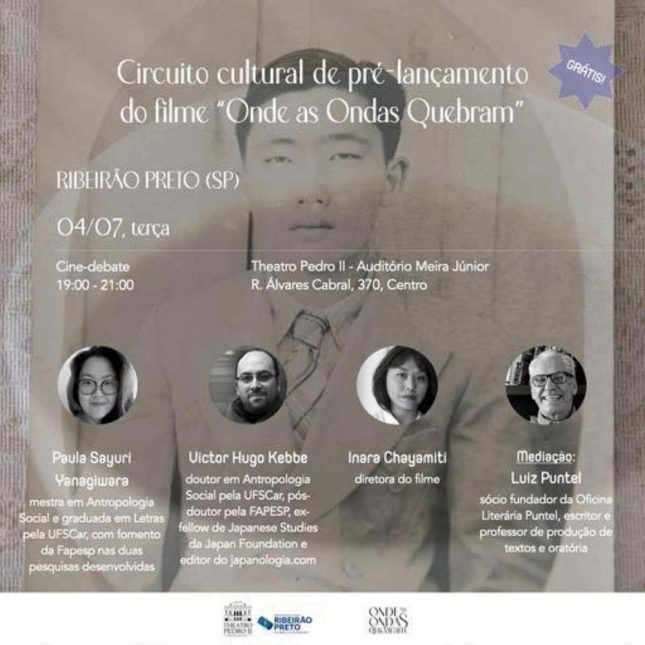 O longa-metragem “Onde as Ondas Quebram”, que conta a história da imigração japonesa no Brasil, dirigido pela ribeirão-pretana Inara Chayamiti, terá uma sessão gratuita, seguida de debate e roda de conversa com convidados, no dia 4 de julho, às 19h, no Theatro Pedro II – Auditório Meira Júnior.