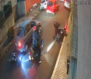 Um dos motociclistas teve fratura exposta (Foto: Reprodução câmera de segurança)