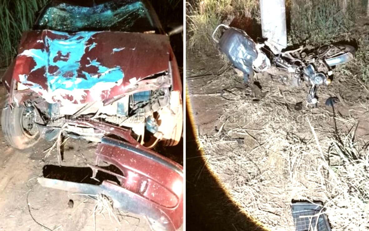 De acordo com informações da Polícia Militar Rodoviária, por volta das 2h, um Fiat Palio colidiu com a traseira de uma motocicleta que seguia no mesmo sentido da via. Após o impacto, o carro atravessou o canteiro central e arrastou a moto por alguns metros, parando apenas ao atingir a cerca de uma propriedade rural.