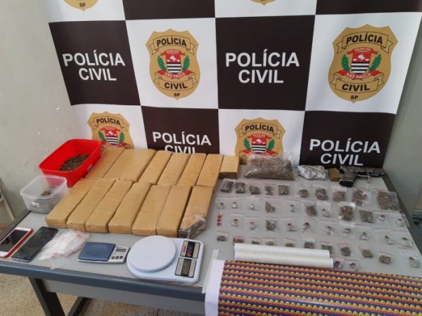 De acordo com informações da Polícia Civil, a dupla mantinha um depósito com 15 tijolos de maconha, várias porções para venda e outros 44 pacotes da mesma droga.