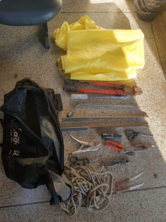 Em relação aos presos, um deles acabou sendo detido ainda no local do crime, quando tentava fugir. Junto deste, foi encontrada uma mochila que continha ferramentas como alicates, facas, lona, alavancas de aço, chave de boca, tesoura, lanterna, corda e linha para amarração.
