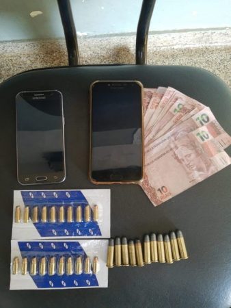 Na sequência, os agentes também tomaram conhecimento de uma segunda casa, onde foram encontradas, em um dos móveis da sala, diversas munições de armas de fogo e notas falsas de R$ 10.