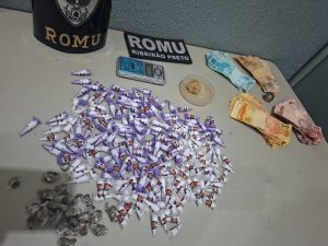 Duas pessoas foram presas em flagrante pelo crime de tráfico de drogas pelas equipes da Ronda Ostensiva e Canil da Guarda Civil Metropoltana, na manhã desta quinta-feira (1), em dois bairros de Ribeirão Preto.