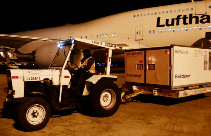 A carga com 20 mil doses, proveniente da China, desembarcou durante a madrugada de ontem no Aeroporto Internacional de Guarulhos e foi levada à sede do Instituto Butantan para ser verificada. Em seguida, será distribuída aos doze centros de pesquisa responsáveis pelo recrutamento, aplicação e acompanhamento dos voluntários.