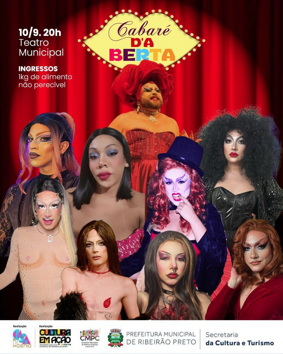 Inspirado nessa atmosfera, o “Cabaré d’A BERTA”, iniciativa da Casa Aberta, com incentivo do Fundo Municipal de Cultura de Ribeirão Preto por meio do edital Cultura em Ação – Programa Municipal de Fomento às Culturas. A apresentação acontecerá na quarta, 10 de setembro, às 20h, no Teatro Municipal. Com retirada de ingressos mediante entrega de 1kg de alimento não perecível. Os alimentos serão doados para o Fundo Social de Solidariedade.