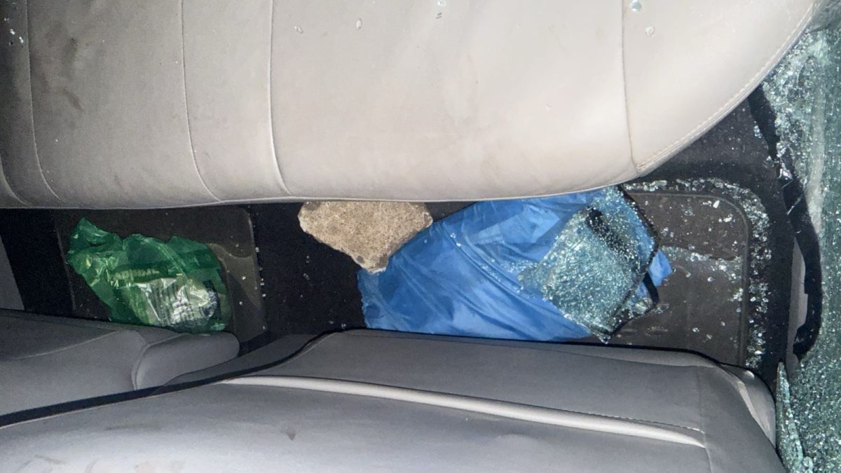 Dentro do carro, que estava com o vidro traseiro esquerdo quebrado, os policiais encontraram uma pedra, que teria sido usada para a tentativa de furto. O proprietário do veículo foi alertado e compareceu ao local.