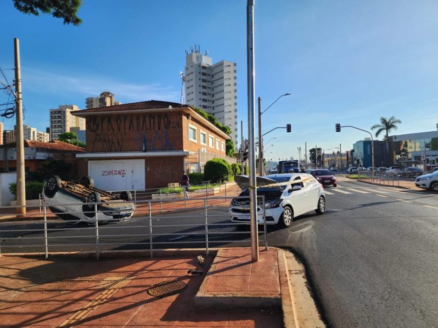 Um carro capotou após uma colisão, na manhã desta quinta-feira (14). O acidente ocorreu no cruzamento da Avenida Independência com Avenida Nove de Julho, na zona Sul de Ribeirão Preto.